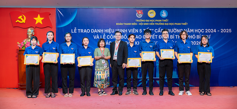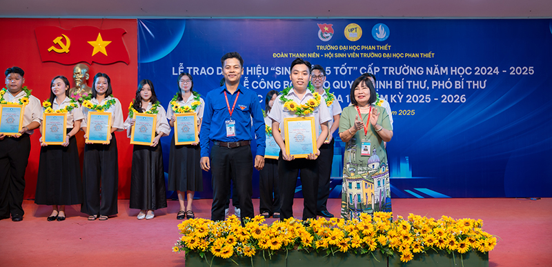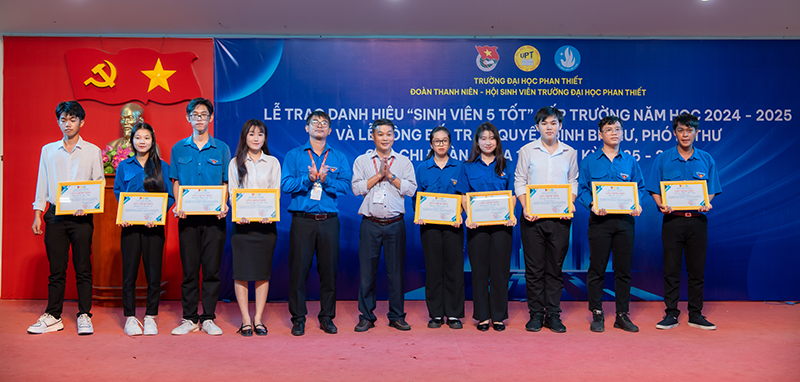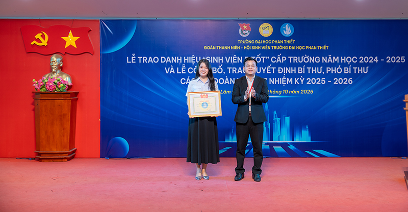 Đồng chí Trần Ngọc Sang – Phó Chủ tịch Hội Sinh viên Việt Nam Trường Đại học Phan Thiết đại diện nhận bằng khen của Ban Chấp hành Trung ương Hội Sinh viên Việt Nam