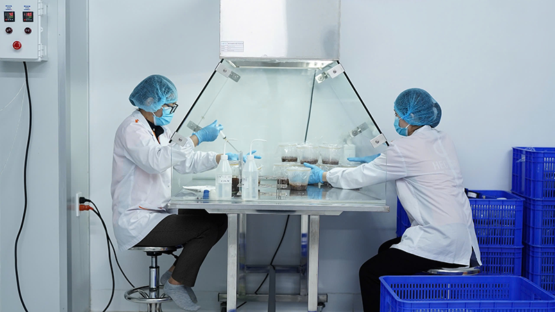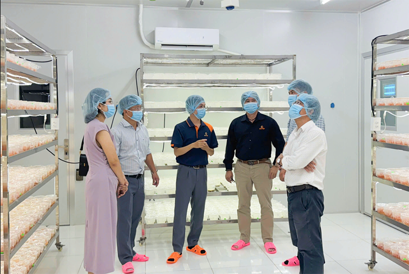 Ông Phan Thanh Đức – Tổng Giám đốc Công ty Cổ phần Lavite bày tỏ sự quan tâm đến hoạt động nghiên cứu thuộc Dự án Hợp tác Quốc tế Việt-Bỉ 5.2, đồng thời khẳng định phía công ty sẵn sàng hỗ trợ nhóm nghiên cứu về mặt kỹ thuật, thiết bị, máy móc liên quan. Tại buổi làm việc, ông Trương Quốc Việt – Trưởng Phòng Nghiên cứu và Phát triển, Công ty Cổ phần Lavite – chi nhánh Bình Thuận đã trình bày về quy trình nuôi cấy nấm đông trùng hạ thảo, quy trình sản xuất và đóng gói các sản phẩm hỗ trợ chăm sóc sức khỏe từ nấm đông trùng hạ thảo để nhóm nghiên cứu Trường Đại học Phan Thiết có cái nhìn tổng quan về các sản phẩm của công ty. Sau đó, đại diện công ty đã mời nhóm nghiên cứu tham quan Nhà máy sản xuất đạt chuẩn FSSC 22000 (Food Safety System Certification 22000); HS-GMP (Good Manufacturing Practice for Health Supplement).