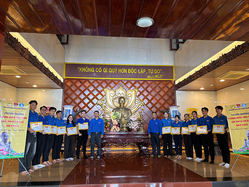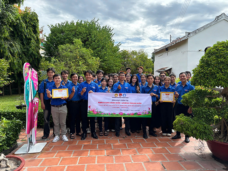 🎖️Nhằm chào mừng kỷ niệm 135 năm ngày sinh Chủ tịch Hồ Chí Minh (19/5/1890 – 19/5/2025) và 114 năm ngày Bác Hồ ra đi tìm đường cứu nước (05/6/1911 – 05/6/2025). Sáng ngày 27/5/2025, Đoàn Thanh niên – Hội Sinh viên Trường Đại học Phan Thiết đã tổ chức chương trình Sinh hoạt chính trị với chủ đề “Khát vọng cống hiến – Lẽ sống thanh niên” kết hợp tuyên dương 30 gương Thanh niên tiên tiến làm theo lời Bác tại Bảo tàng Hồ Chí Minh – Chi nhánh Bình Thuận và tham quan Khu di tích Dục Thanh.