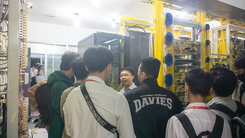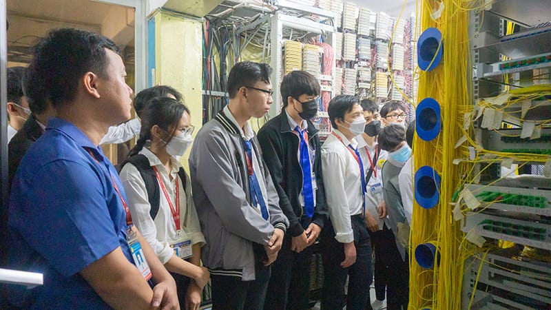 Continuing the program, under the guidance of VNPT Binh Thuan officials and employees, UPT students visited VNPT’s Information Technology Data Center. In each area, students can access and listen to information about network infrastructure, data storage systems and advanced technologies currently being applied… In addition, students also have the opportunity to opportunity to exchange and ask questions with officials working at VNPT headquarters, thereby accumulating a lot of practical work experience and necessary skills to effectively serve the work process after graduation. graduate.