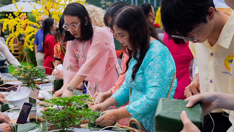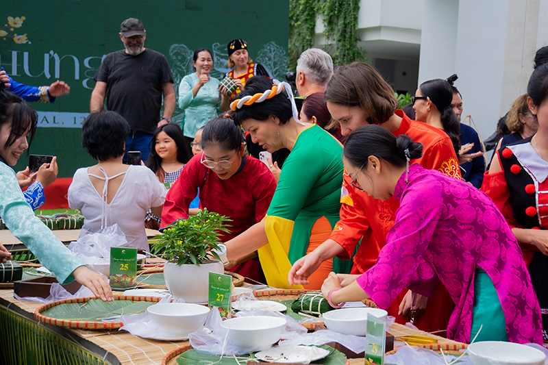 Đặc biệt, các hoạt động trải nghiệm như thi gói bánh chưng, nấu bánh chưng và trình diễn các trò chơi dân gian đã thu hút đông đảo người tham gia. Ngoài ra, sự kiện còn có phần trình diễn của các nghệ nhân làm đồ chơi truyền thống, góc ông đồ viết thư pháp tặng câu đối đỏ, cùng các gian hàng ẩm thực đặc trưng với bánh mứt, trái cây và món ăn ngày Tết.