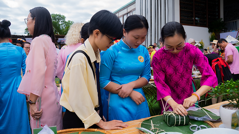 “Lễ hội Bánh Chưng” của The Cliff Resort & Residences, Mũi Né là một trong những hoạt động truyền thống quen thuộc có sự tham gia của tập thể cán bộ, giảng viên, sinh viên Khoa Du lịch trường Đại học Phan Thiết mỗi dịp tết đến xuân về. Đây không chỉ là dịp để các em ôn lại những giá trị văn hóa dân tộc mà còn thể hiện sự quan tâm sâu sắc của doanh nghiệp trong tỉnh đối với thế hệ trẻ, góp phần kết nối sinh viên với thực tiễn ngành nghề.
