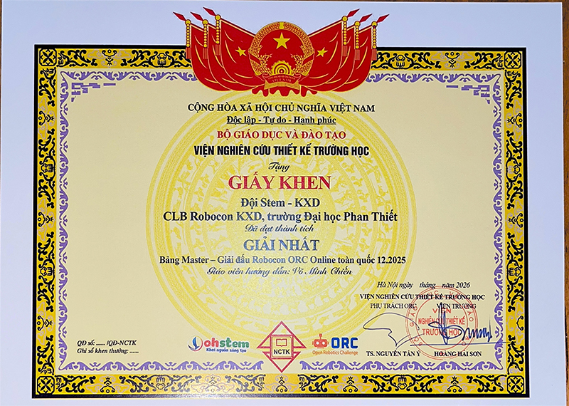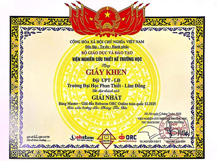 Với sự chuẩn bị kỹ lưỡng, tinh thần thi đấu nghiêm túc và năng lực chuyên môn vững vàng, các đội thi của Trường Đại học Phan Thiết đã đạt được những thành tích ấn tượng. Hai đội UPT – LĐ và Stem – KXD xuất sắc giành giải Vô địch, trong khi đội FIT – TEAM đạt giải Khuyến khích. Thành tích này không chỉ khẳng định chất lượng đào tạo của Nhà trường trong lĩnh vực kỹ thuật – công nghệ, mà còn cho thấy sự năng động, sáng tạo và khả năng hội nhập của sinh viên UPT trong các sân chơi công nghệ quy mô toàn quốc.