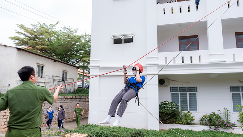 Trong khuôn khổ chương trình, tập thể cán bộ, giảng viên và học sinh, sinh viên đã được trang bị kiến thức cơ bản về PCCC, được hướng dẫn kỹ thuật sơ cứu ban đầu cho người bị nạn và các kỹ năng cứu nạn cần thiết nếu xảy ra cháy. Đồng thời, được trải nghiệm thoát nạn bằng xe thang, thực hành sử dụng thiết bị banh – cắt thủy lực, thực hành sử dụng bình chữa cháy xách tay dập tắt đám cháy do rò rỉ khí gas, sử dụng thang dây thoát nạn bằng cầu dây nghiêng, thực hành rải vòi chữa cháy, phun nước tiêu điểm, thực hành sử dụng nệm hơi.