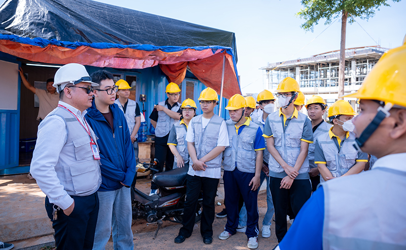 Đặc biệt, sinh viên có cơ hội quan sát trực tiếp tại công trường, đặt câu hỏi và trao đổi cùng các kỹ sư, qua đó nâng cao nhận thức thực tiễn và hiểu rõ hơn về môi trường làm việc chuyên nghiệp trong ngành xây dựng.