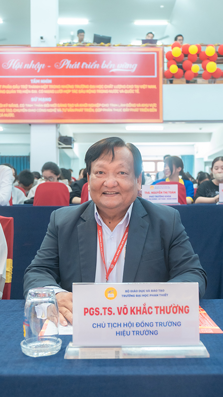 PGS.TS. NGƯT. Võ Khắc Thường – Chủ tịch Hội đồng Trường, Hiệu trưởng Trường Đại học Phan Thiết phát biểu