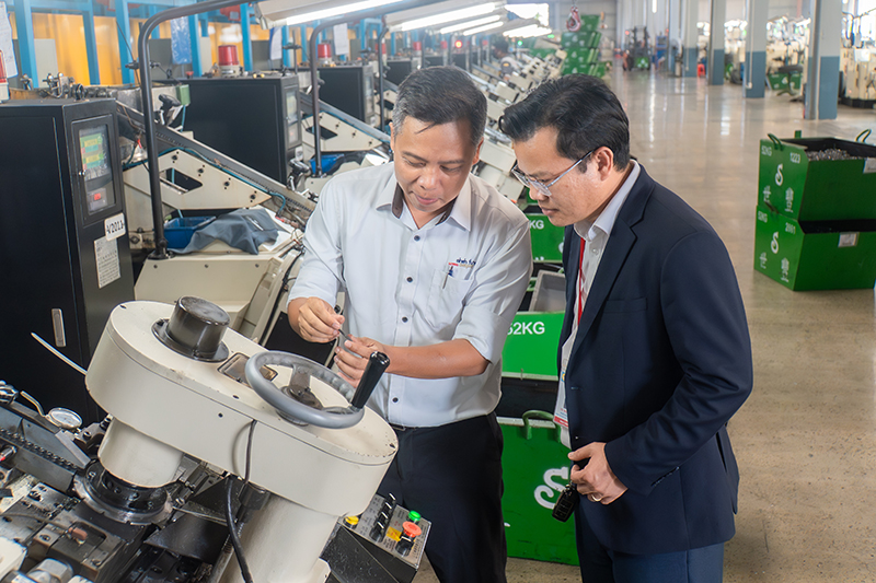 Following the working session, faculty members from the Faculty of Engineering and Technology conducted a site visit to the company’s factory, where they explored the production processes, machinery systems, and modern technologies at SHEH FUNG SCREWS Vietnam Co., Ltd. This activity also enabled lecturers to update their practical knowledge, thereby enhancing teaching quality and strengthening the integration of theory and practice in the University’s training programs.