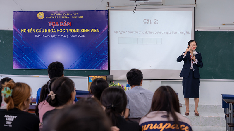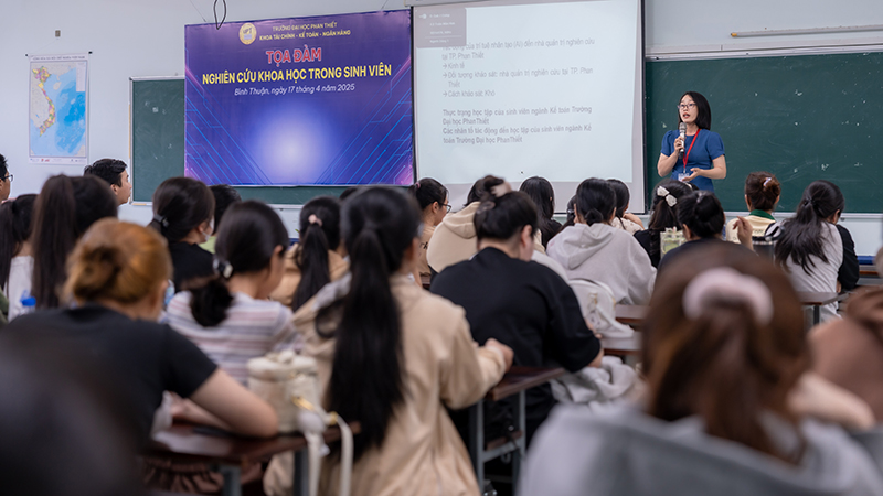 Nhằm thúc đẩy hoạt động nghiên cứu khoa học (NCKH) trong sinh viên và góp phần xây dựng nguồn tài liệu học thuật của trường đại học Phan Thiết, Khoa Tài chính – Kế toán – Ngân hàng đã tổ chức buổi “Tọa đàm Tọa Đàm Nghiên Cứu Khoa Học Trong Sinh Viên”. Chương trình nhằm khuyến khích, hướng dẫn và hỗ trợ sinh viên trong việc thực hiện các đề tài NCKH, đồng thời định hướng nghiên cứu và hướng tới việc phát huy năng lực, tư duy sáng tạo, khả năng nghiên cứu độc lập cũng như làm việc nhóm của sinh viên. Ngoài ra, hoạt động NCKH còn giúp hình thành kỹ năng tự học, tự nghiên cứu và nâng cao năng lực thực hiện các công trình NCKH trong sinh viên. Qua đó, góp phần xây dựng nguồn tài liệu học thuật phục vụ công tác giảng dạy, học tập và nghiên cứu tại Khoa Tài chính – Kế toán – Ngân hàng.