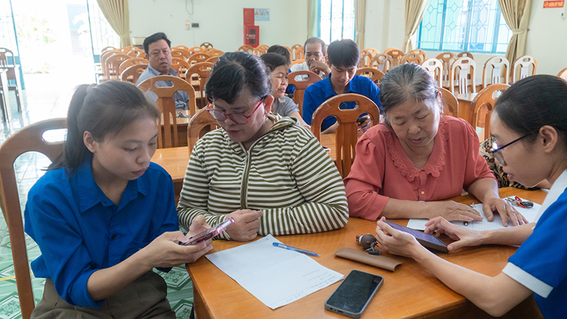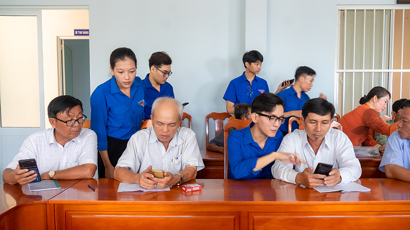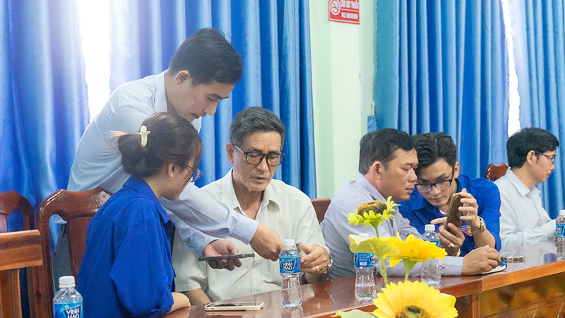 Hướng dẫn người dân các xã trên địa bàn cài đặt VNEID và sử dụng các ứng dụng công nghệ số phục vụ đời sống hằng ngày.