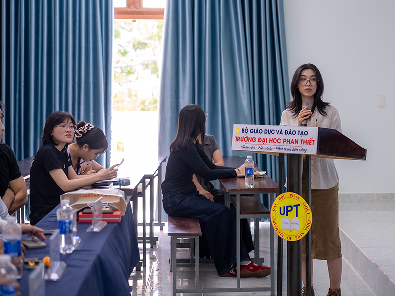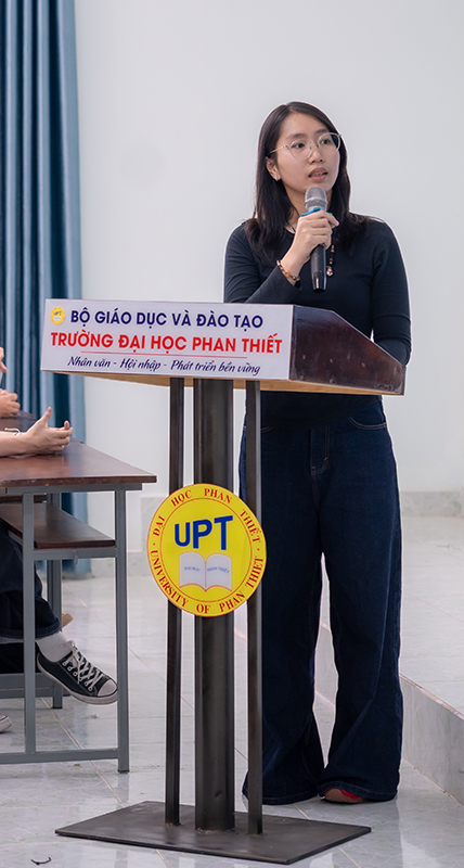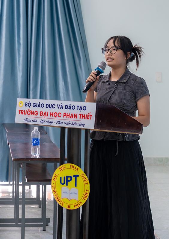 Nội dung buổi tọa đàm được thiết kế phong phú, tập trung vào việc nâng cao nhận thức về phát triển bền vững. ThS. Đỗ Thị Hoàng Yến, đến từ Khoa Du lịch, Trường Đại học Phan Thiết mở đầu với chuyên đề “Giới thiệu đặc trưng văn hóa, con người và kiến trúc địa phương”, giúp sinh viên hiểu rõ giá trị bản sắc của vùng đất Phan Thiết – Bình Thuận (cũ) cần được bảo tồn trong quy hoạch đô thị, đồng thời góp phần xây dựng cộng đồng văn hóa bền vững.