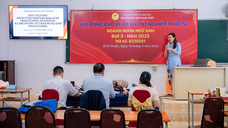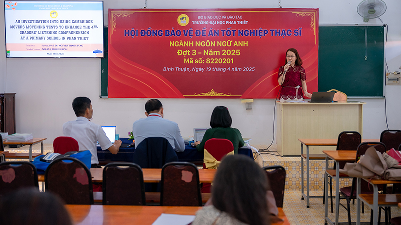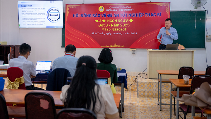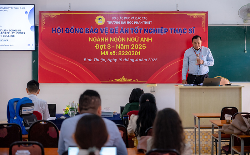 Ngày 19/4/2025, Trường Đại học Phan Thiết đã tổ chức thành công buổi bảo vệ Đề án tốt nghiệp cho 7 học viên cao học ngành Ngôn ngữ Anh, thuộc đợt 3 năm 2025. Buổi lễ diễn ra với sự tham gia của các giảng viên, chuyên gia có uy tín và nhiều kinh nghiệm trong lĩnh vực đào tạo sau đại học.