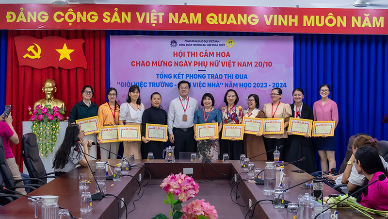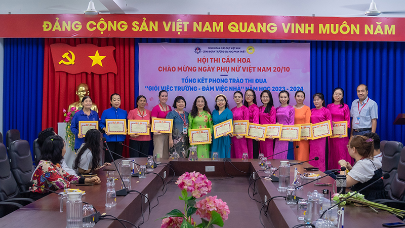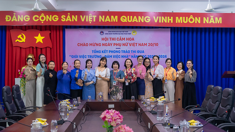 Sáng ngày 17 tháng 10 năm 2024, hoà cùng với khí thế thi đua sôi nổi của chị em phụ nữ trong cả nước. Được sự nhất trí của Đảng bộ, Ban Giám hiệu, Công đoàn trường Đại học Phan Thiết tổ chức cuộc thi cắm hoa và tổng kết phong trào thi đua “Giỏi việc trường – Đảm việc nhà” năm học 2023-2024 để chào mừng Kỷ niệm 94 năm ngày Thành lập Hội Liên hiệp phụ nữ (LHPN) Việt Nam (20/10/1930 – 20/10/2024), 14 năm ngày Phụ nữ Việt Nam (20/10/2010 – 20/10/2024)