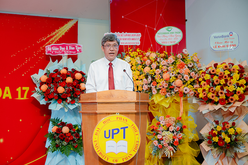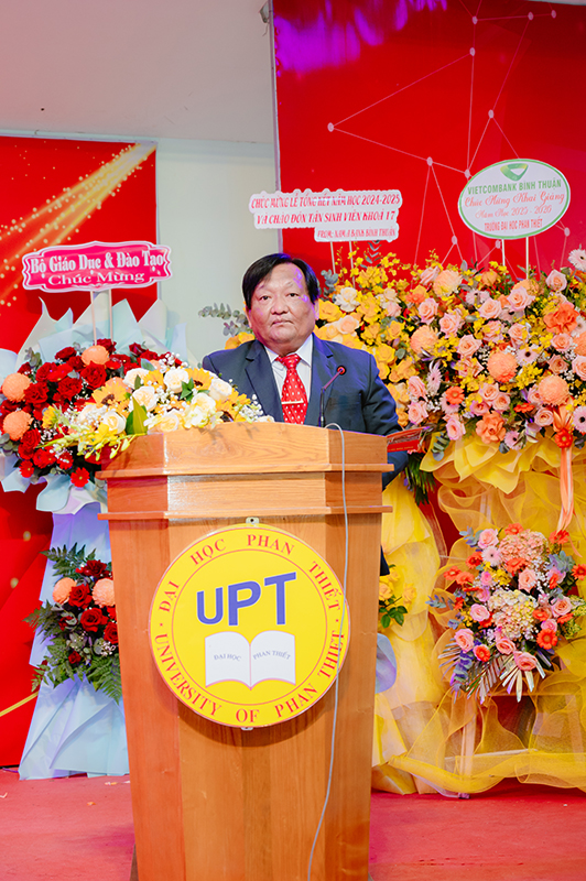 Thay mặt tập thể Trường, NGƯT.PGS.TS. Võ Khắc Thường – Chủ tịch Hội đồng Trường – Hiệu trưởng Trường Đại học Phan Thiết bày tỏ lòng cảm ơn đến sự quan tâm chỉ đạo sát sao của các cấp lãnh đạo Tỉnh, sự đồng hành của các đối tác, sự ủng hộ của quý phụ huynh, sự đồng lòng của toàn thể cán bộ, giảng viên, nhân viên và tinh thần học tập sáng tạo của học viên, sinh viên.