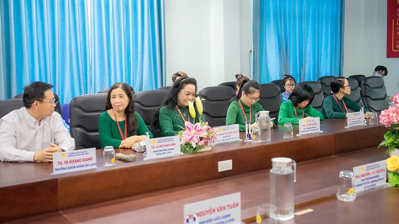 Attending the program, on the part of Phan Thiet University, there was the presence of Meritorious teacher, Associate Professor, Dr. Vo Khac Thuong – Chairman of the School Council – Principal of school; Dr. Vo Khac Truong Thanh – School Council member – Vice Principal of the School; MSc. Nguyen Nhu Truong – Deputy Head of Student Political Affairs – Business Relations & Student Employment Support; representatives of leaders, staff, lecturers and students from departments and faculties in the University. On the side of DiHotel Solution Joint Stock Company, there are Mr. Nguyen Vinh Tam – Chairman of the Board of Directors, Mr. Nguyen Tri Huy – Chief Strategy Officer. On the guest representative side was Mr. Nguyen Van Tuan – CEO of Vipol Mui Ne Hotel & Spa.
