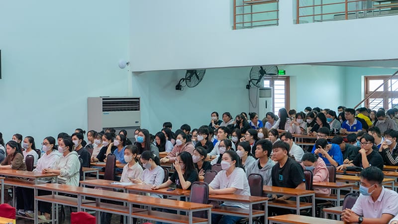 Hình ảnh sinh viên UPT trong buổi sinh hoạt công dân đầu khóa