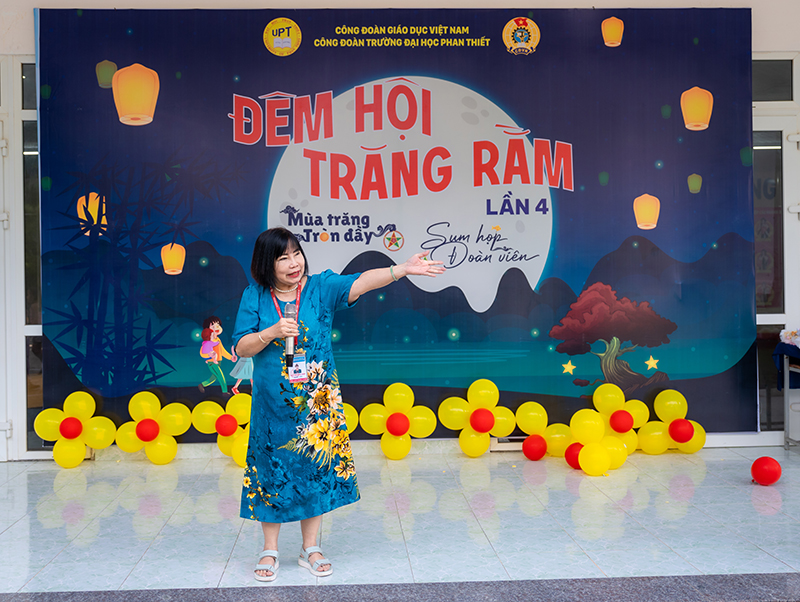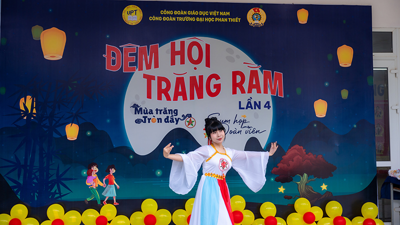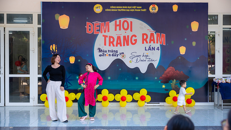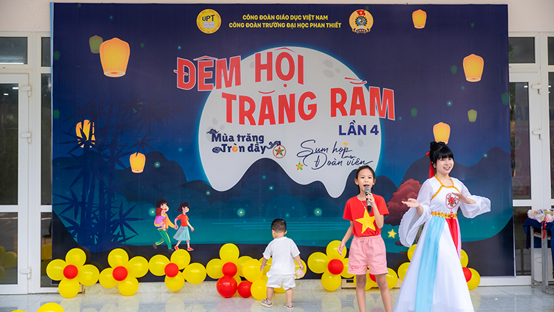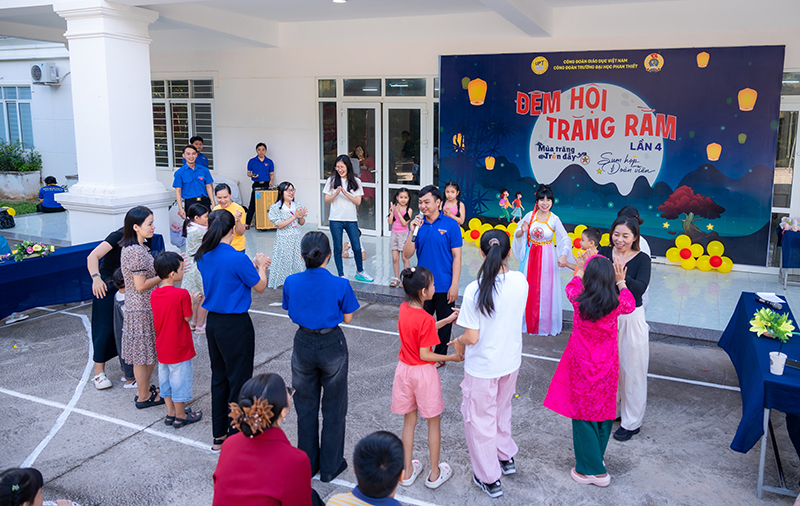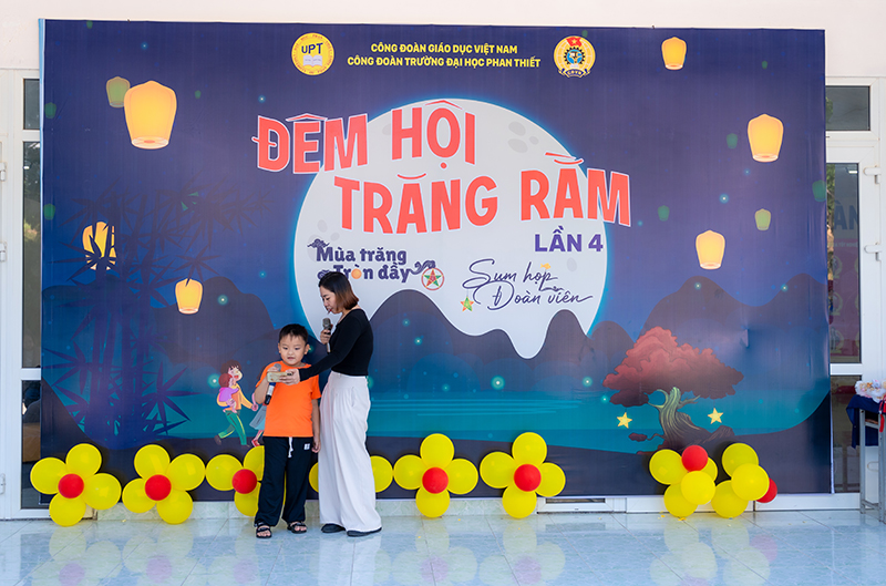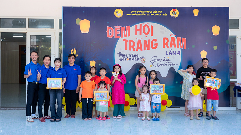 Trong không khí rộn ràng của mùa Trung thu – Tết đoàn viên truyền thống của dân tộc, ngày 04/10/2025, Công đoàn Trường Đại học Phan Thiết đã tổ chức thành công chương trình “Đêm hội Trăng Rằm – Mùa trăng tròn đầy – Sum họp đoàn viên” lần thứ 4 dành cho con em cán bộ, giảng viên, nhân viên Nhà trường. Chương trình là món quà ý nghĩa, mang lại niềm vui, tiếng cười và những trải nghiệm đáng nhớ cho các em thiếu nhi trong dịp Trung thu năm nay.