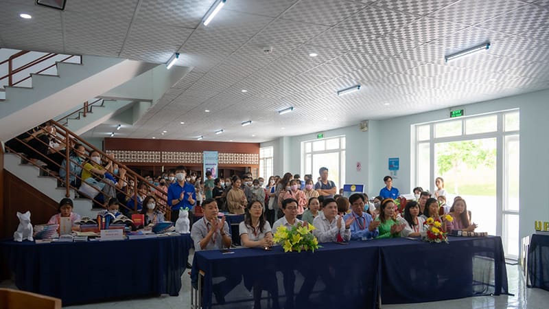 On the guest side, Phan Thiet University is honored to welcome Mr. Tran Thanh Phuong – Head of Fahasa Binh Thuan Bookstore to attend the program. During this period, Fahasa Bookstore also brought about 1,000 books of diverse genres to introduce to the UPT team, contributing to spreading positive effects, encouraging the reading movement, and building a culture of learning. practice and research of the whole school.