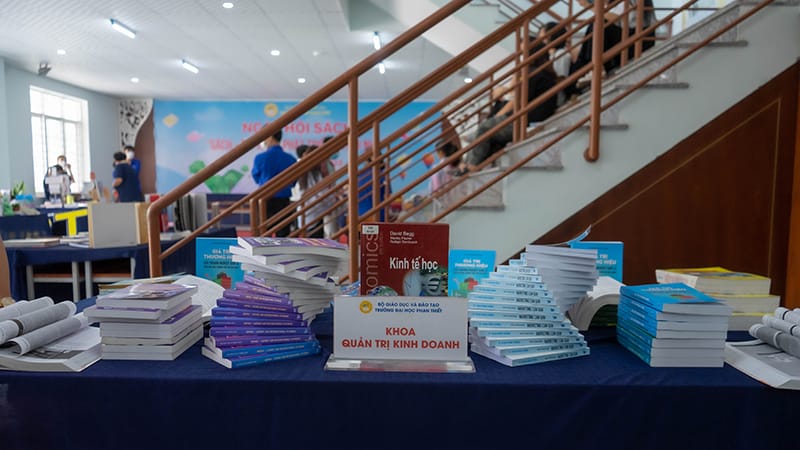 Trong chương trình năm nay, 8 Khoa chuyên môn trường Đại học Phan Thiết đã đem đến 8 gian hàng sách tham khảo, giáo trình, sách chuyên khảo liên quan đến các chuyên ngành trường đang đào tạo, tạo điều kiện cho sinh viên được dễ dàng tiếp cận các nguồn học liệu có giá trị và tìm hiểu rõ hơn về chuyên ngành mình đang theo học.