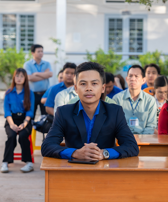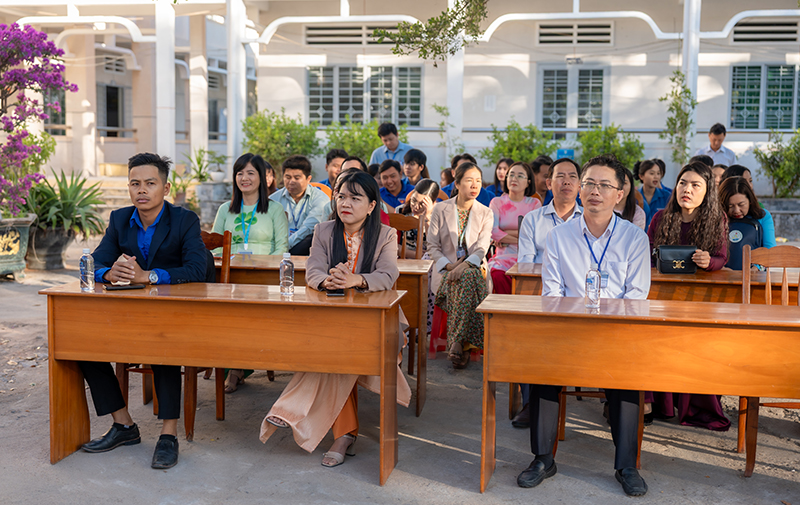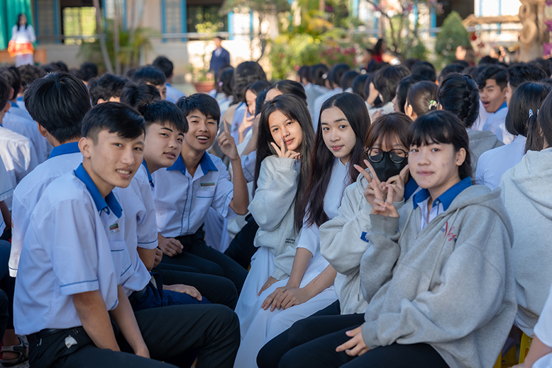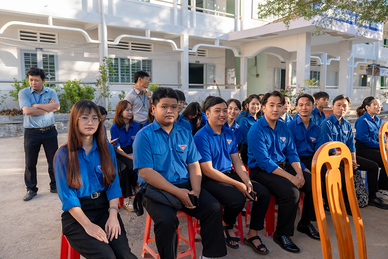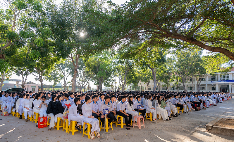 Attending the program from the University of Phan Thiet was ThS. Nguyen Huu Tien, Deputy Secretary of the Youth Union and President of the Student Union. From Luong The Vinh – Ham Kiem High School , there were Mr. Huynh Trung Dong, Deputy Secretary of the Party Committee, Vice Principal of the school; Ms. Dinh Thi Ha, Vice Principal of the school; and Mr. Phan Cong Tinh, Secretary of the Youth Union, along with all the faculty members, staff, and students of the school.