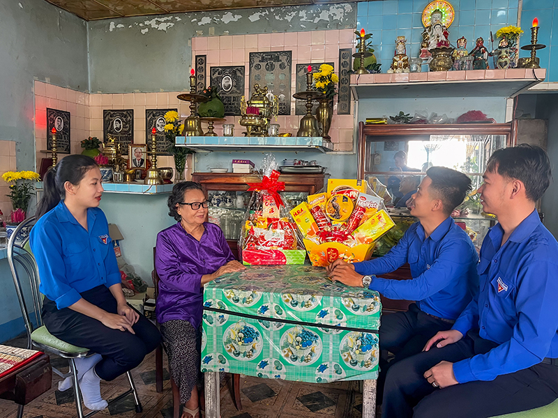 Với tinh thần “Uống nước nhớ nguồn”, Đoàn Thanh niên – Hội Sinh viên Nhà trường đã đến thăm, tặng quà và chúc Tết Mẹ Việt Nam Anh hùng Nguyễn Thị Diệu, 01 gia đình liệt sĩ và 02 gia đình chính sách có hoàn cảnh khó khăn trên địa bàn. Mỗi phần quà trị giá 400.000 đồng, tuy giá trị vật chất không lớn nhưng thể hiện tấm lòng tri ân, sự kính trọng và biết ơn sâu sắc của tuổi trẻ UPT đối với những hy sinh, cống hiến to lớn của các thế hệ đi trước vì độc lập, tự do của Tổ quốc.