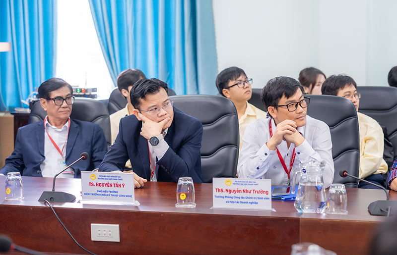 Tham dự Lễ ký kết, về phía trường Đại học Phan Thiết có sự hiện diện của PGS.TS. Đinh Phi Hổ – Bí thư Đảng ủy – Phó hiệu trưởng Nhà trường; TS. Nguyễn Tấn Ý – Phó Hiệu trưởng Nhà trường – Trưởng Khoa Kỹ thuật Công nghệ; ThS. Nguyễn Như Trường –Trưởng Phòng Công tác Chính trị sinh viên – Hợp tác Doanh nghiệp; đại diện lãnh đạo, cán bộ, giảng viên và sinh viên đến từ các đơn vị phòng, khoa trong Nhà trường.