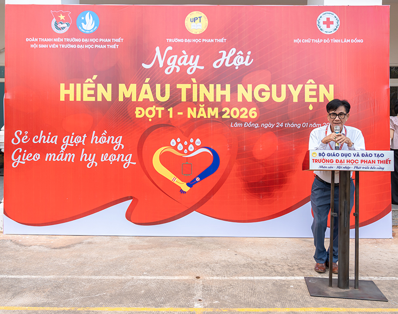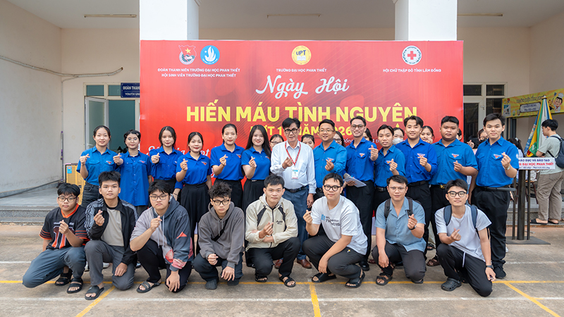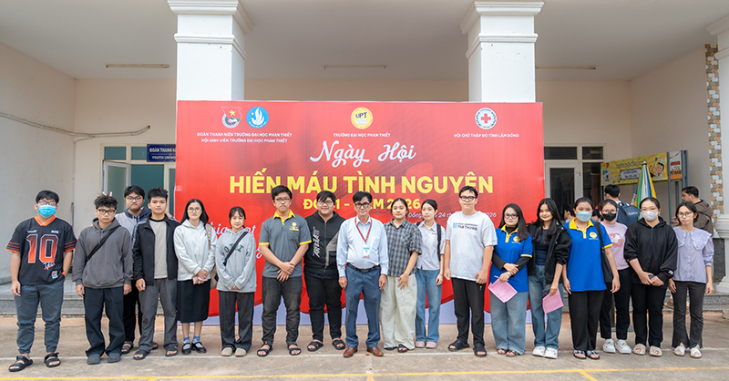 Sáng ngày 24/01/2026, Trường Đại học Phan Thiết đã tổ chức Ngày hội hiến máu tình nguyện với sự tham gia tích cực của đông đảo cán bộ, giảng viên, nhân viên và sinh viên đến từ các Khoa, Phòng, Ban, Trung tâm trong toàn Trường.