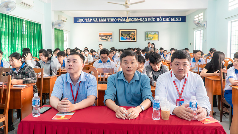 Attending the program, representatives from the University of Phan Thiet included M.Sc. Võ Quốc Tuấn – Vice Dean of the Faculty of Information Technology, and M.Sc. Nguyễn Hữu Hoài Chương – Lecturer of the Faculty of Engineering and Technology, along with faculty members and academic staff from both faculties. From Luong The Vinh High School – Ham Kiem, participants included Ms. Đinh Thị Hà – Vice Principal, teachers of Physics and Information Technology, and especially students with a strong interest and passion for science and technology.