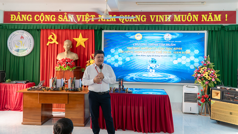 On the morning of April 9, 2026, the Faculty of Information Technology, in collaboration with the Faculty of Engineering and Technology, University of Phan Thiet, organized a Robocon training program for students from Luong The Vinh High School – Ham Kiem.