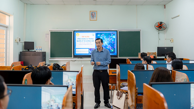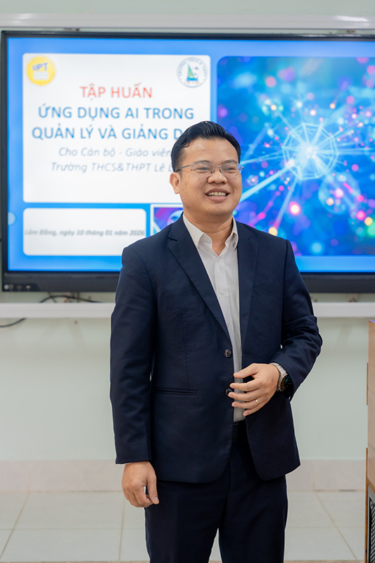 Ngày 10/01/2026, Trường Đại học Phan Thiết (UPT) đã tổ chức chương trình tập huấn “Ứng dụng AI trong quản lý và giảng dạy” dành cho cán bộ, giáo viên Trường THCS & THPT Lê Lợi, góp phần hỗ trợ đội ngũ giáo viên tiếp cận, khai thác hiệu quả các công cụ Ai trong hoạt động quản lý và dạy học.