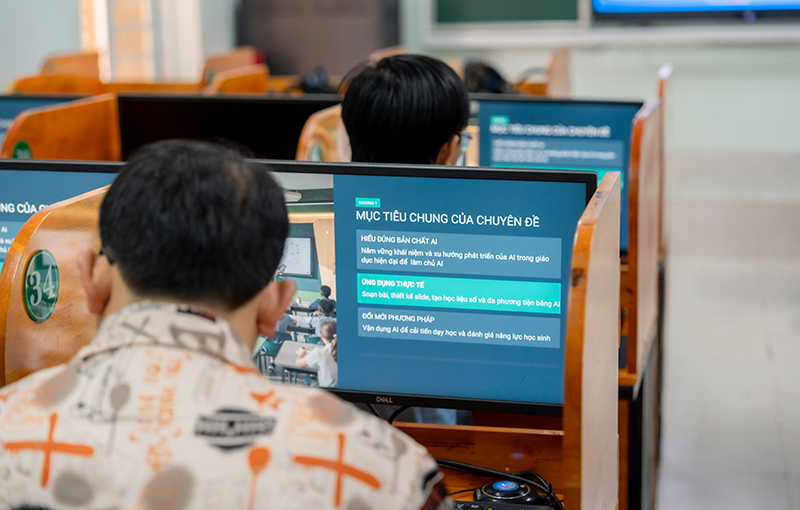 Chương trình tập huấn tập trung vào các hoạt động trải nghiệm thực tế, giúp giáo viên tiếp cận và ứng dụng AI hiệu quả trong giảng dạy như: soạn bài giảng, thiết kế slide, infographic và sơ đồ tư duy; tạo video tóm tắt kiến thức nhằm hỗ trợ học sinh hiểu bài nhanh hơn; xây dựng câu hỏi trắc nghiệm, đề kiểm tra theo định hướng đánh giá năng lực. Đồng thời, chương trình cũng nhấn mạnh việc nhận diện và hạn chế lạm dụng AI, hướng đến sử dụng AI đúng cách và có trách nhiệm trong học tập và giảng dạy.