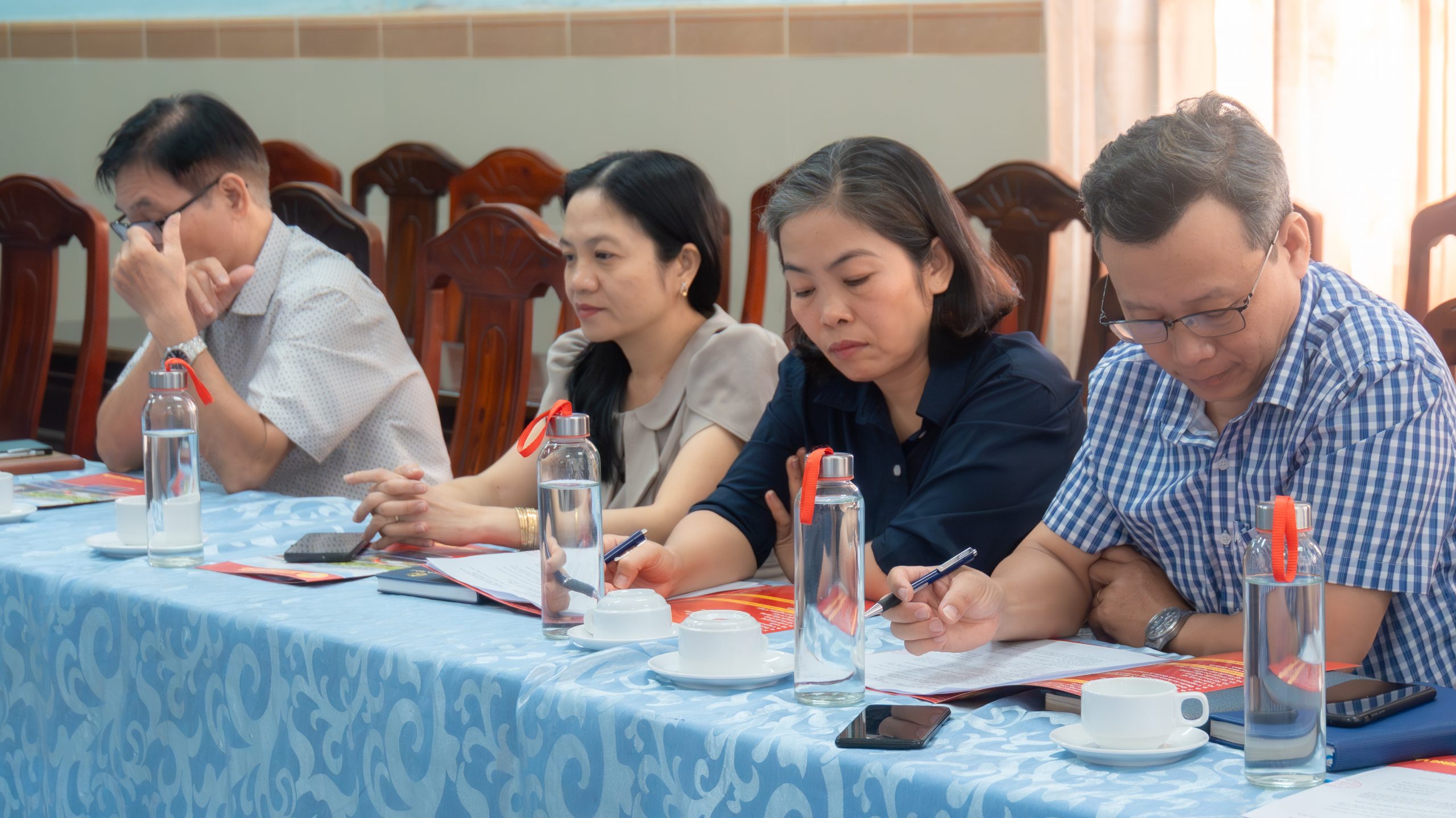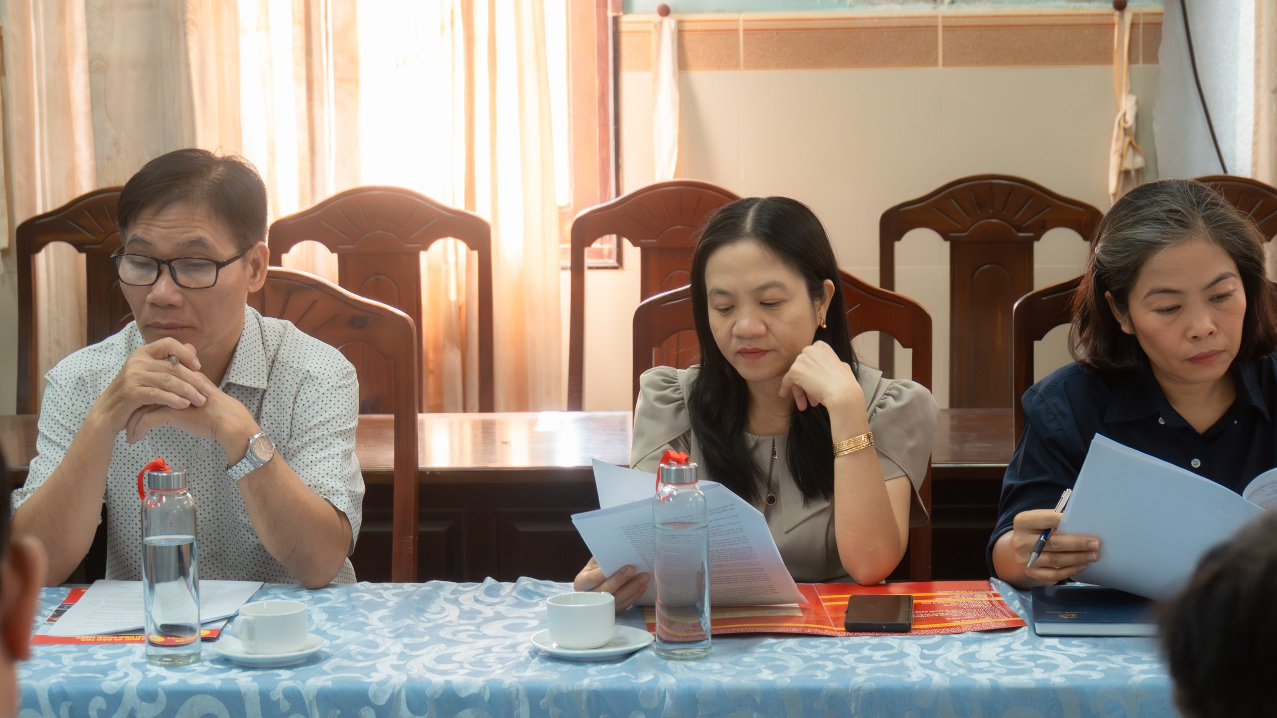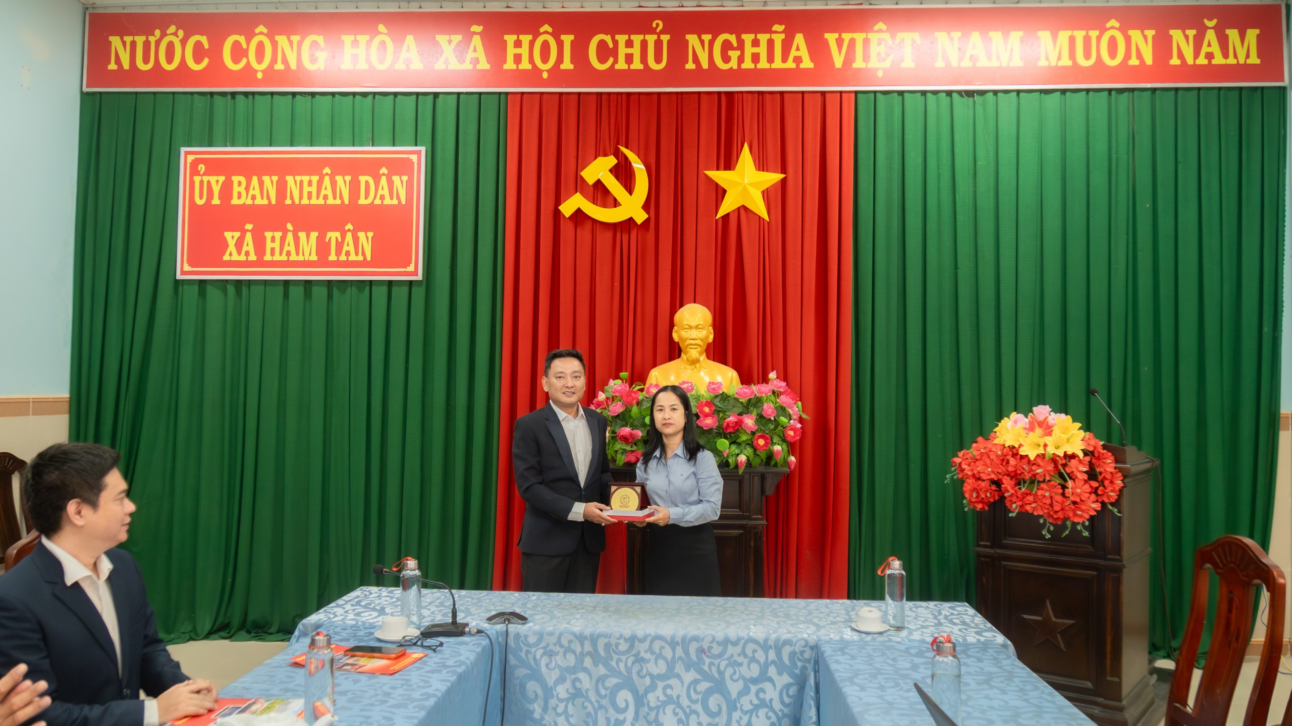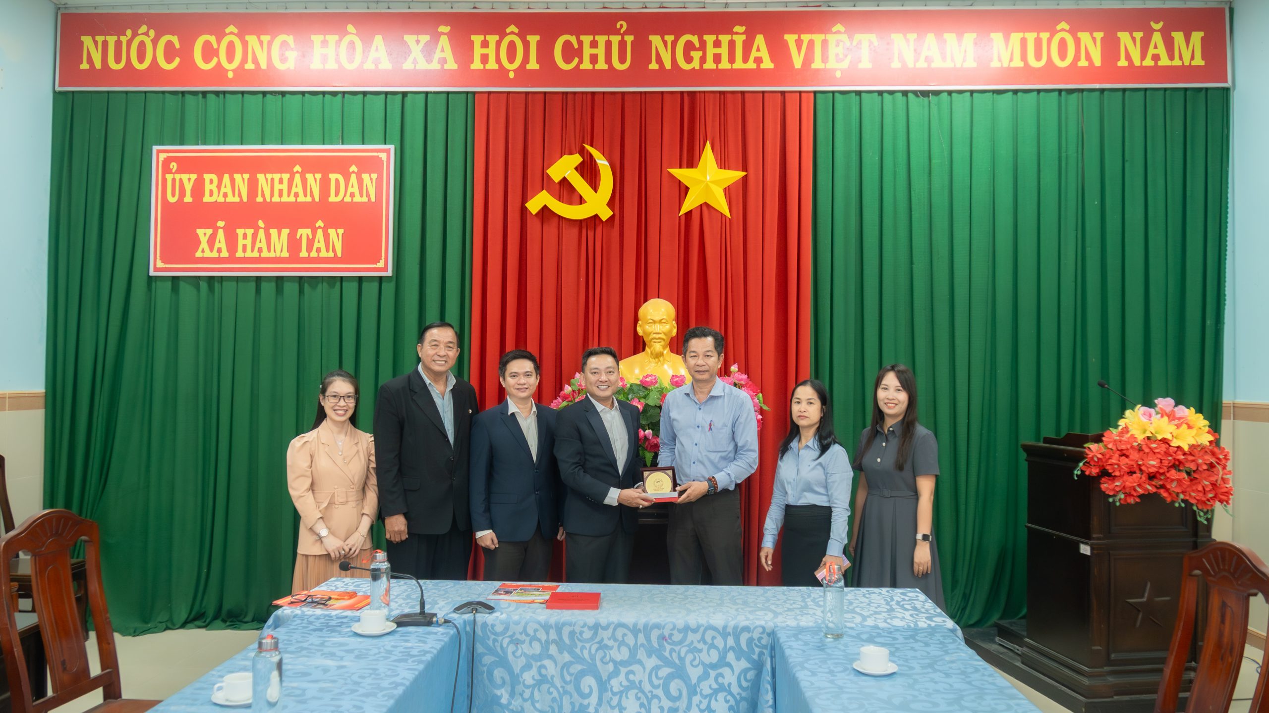 On the side of the local authorities, the delegation was welcomed and worked with Ms. Le Thi Kim Nhung – Vice Chairwoman of the People’s Committee of Ham Tan Commune; representatives of the Party Building Committee; Head of the Division of Culture and Social Affairs; representatives from the Division of Economics, the Office of the People’s Council and People’s Committee, the Public Administrative Service Center of the commune, the Party Committee Office, as well as principals of primary, lower secondary, and upper secondary schools in the commune.