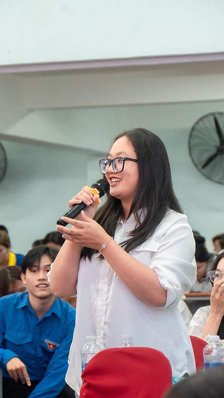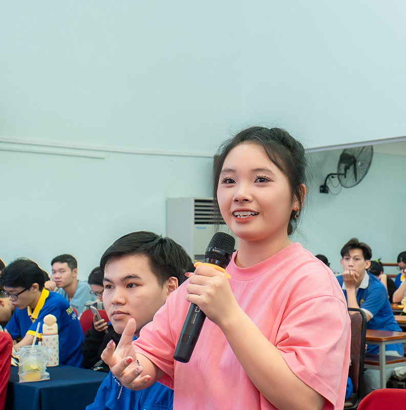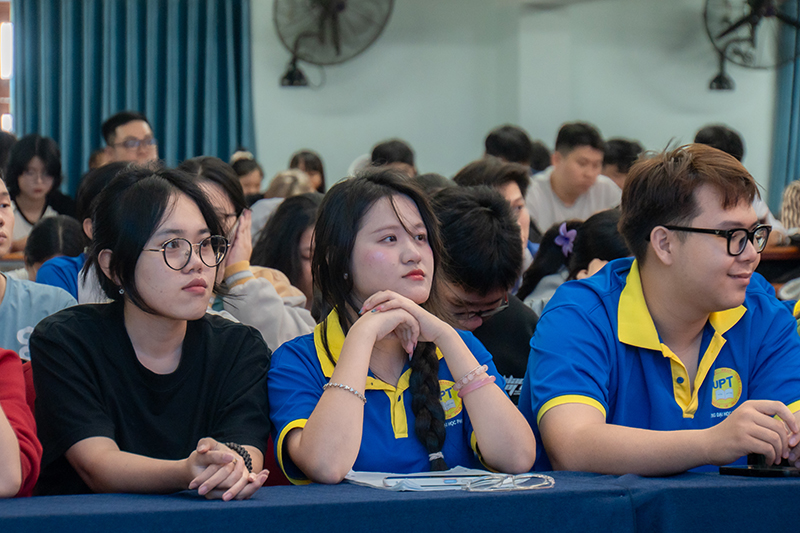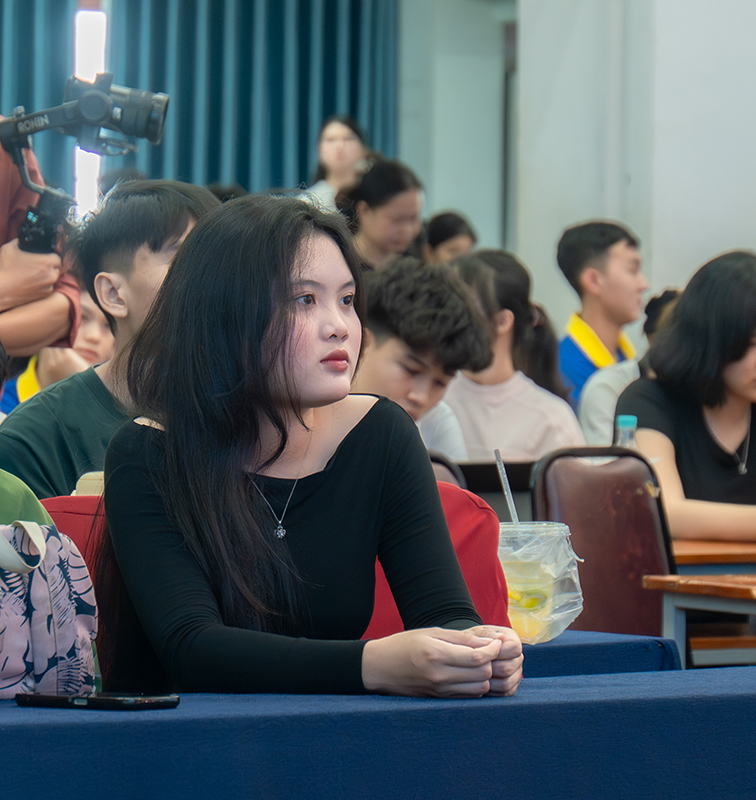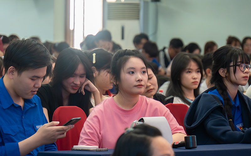 Attending the workshop were Dr. Nguyen Tan Y – Vice Rector and Dean of the Faculty of Engineering and Technology; Dr. To Binh Minh – Dean of the Faculty of Business Administration; Dr. Pham Thi Hong Tam – Dean of the Faculty of Economic Law; along with faculty members, staff, and especially students from the Faculty of Business Administration and the Faculty of Economic Law.