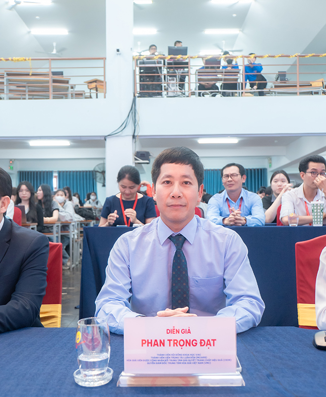 Điểm nhấn của chương trình là phần chia sẻ từ diễn giả Phan Trọng Đạt – chuyên gia uy tín trong lĩnh vực trọng tài và hòa giải thương mại, hiện là Thành viên Hội đồng Khoa học VIAC, Thành viên Trọng tài Luân Đôn (MCIArb), Hòa giải viên được công nhận bởi CEDR và Quyền Giám đốc Trung tâm Hòa giải Việt Nam (VMC). Với kinh nghiệm thực tiễn phong phú, diễn giả đã mang đến nhiều góc nhìn sâu sắc và cập nhật về xu hướng giải quyết tranh chấp ngoài Tòa án trong bối cảnh chuyển đổi số.