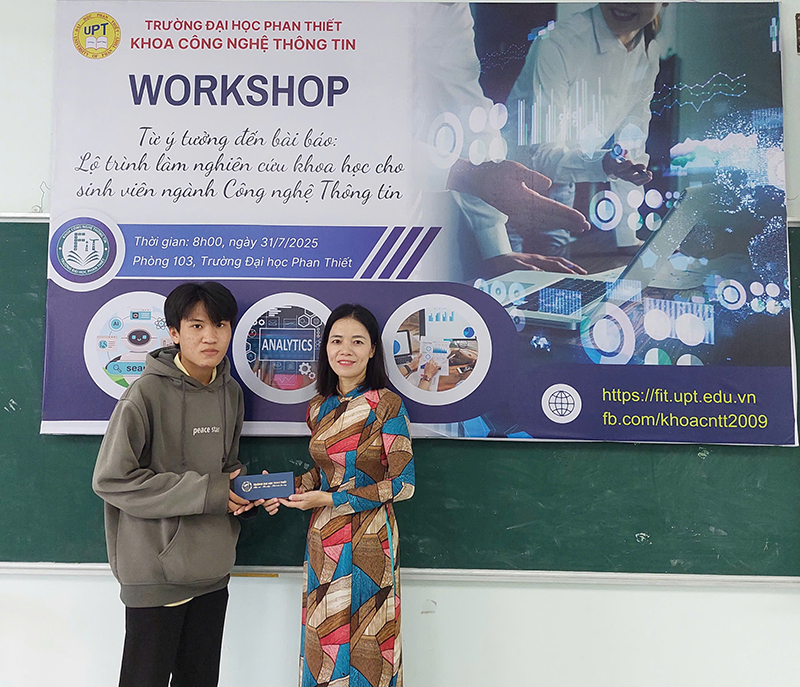 📍 Với mong muốn thúc đẩy tinh thần nghiên cứu, sáng tạo và giúp sinh viên hình dung được con đường hiện thực hóa ý tưởng thành công trình nghiên cứu khoa học, sáng ngày 31/7/2025, Khoa Công nghệ Thông tin – Trường Đại học Phan Thiết đã tổ chức buổi Workshop với chủ đề “Từ ý tưởng đến bài báo: Lộ trình làm nghiên cứu khoa học cho sinh viên ngành Công nghệ Thông tin”.