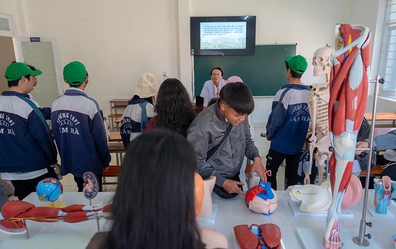 Tập thể học sinh được chia thành 4 nhóm, mỗi nhóm tiến hành tham quan và trải nghiệm tại các khu vực thực hành của các Khoa chuyên môn thuộc trương Đại học Phan Thiết. Đây là cơ hội để các em khám phá những ngành nghề mà mình quan tâm và trực tiếp tìm hiểu những kỹ năng, kiến thức chuyên sâu mà Trường Đại học Phan Thiết cung cấp.