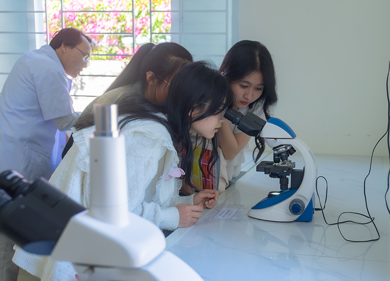Học sinh tham quan khu vực thực hành Khoa học Sức khỏe
