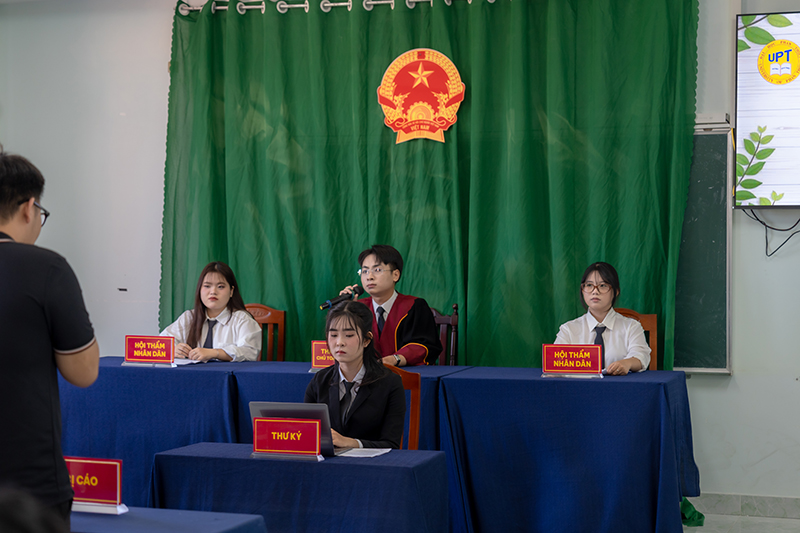 Finally, the fourth group had the opportunity to participate in a Mock Trial, organized by the Faculty of Economic Law. This unique activity allowed students to experience judicial procedures firsthand, taking on roles such as judges, lawyers, and defendants. The mock trial not only enhanced students’ understanding of the Law discipline but also enabled them to gain insight into the responsibilities and professional nature of legal careers. Through this experience, students were able to better recognize the importance and career prospects of the legal field in society.