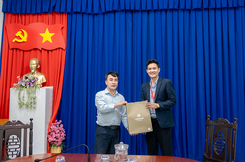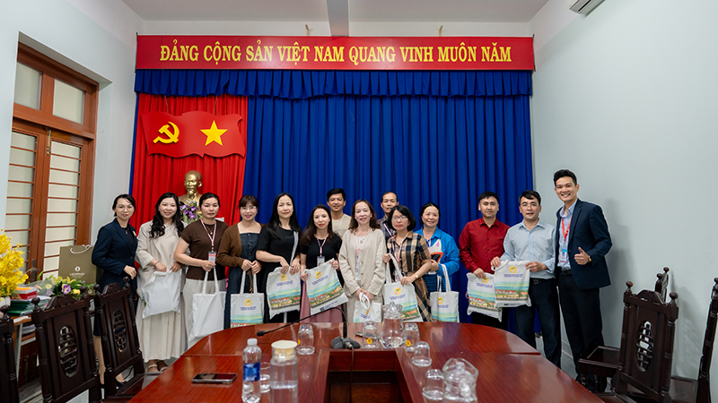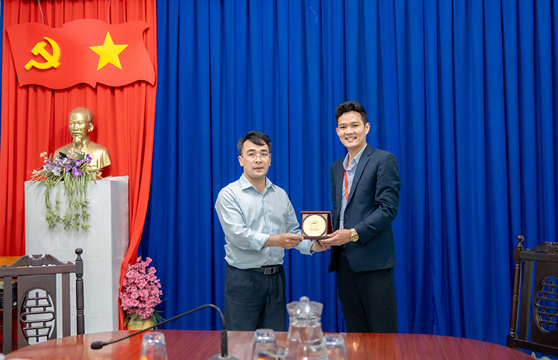 Representatives of the University of Phan Thiet and Bui Thi Xuan – Da Lat High School exchanging commemorative gifts