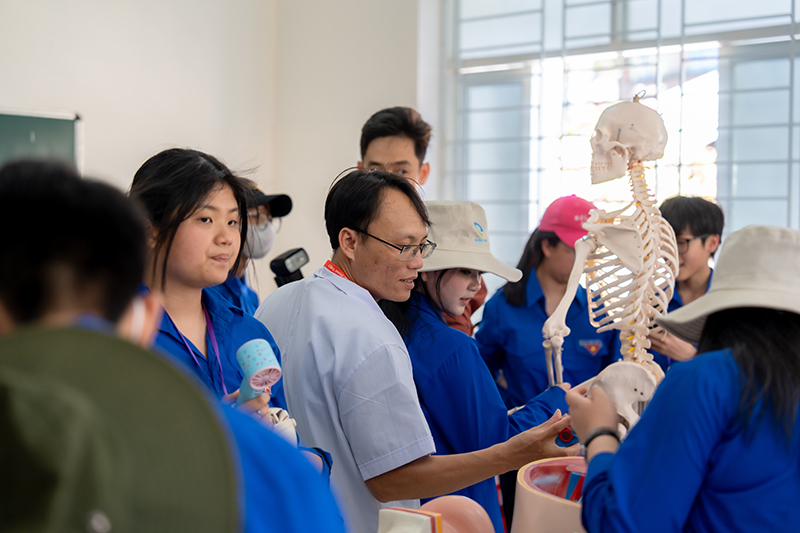 Tiếp đó, tại Khoa Khoa học Sức khỏe, các em được giới thiệu về hệ thống phòng thực hành, phòng thí nghiệm và trang thiết bị hiện đại phục vụ đào tạo. Qua đó, Nhà trường khẳng định điều kiện học tập đáp ứng tốt yêu cầu thực hành và nâng cao năng lực chuyên môn cho sinh viên trong lĩnh vực chăm sóc sức khỏe.