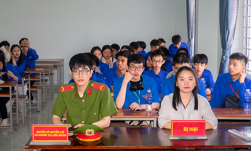 Một điểm nhấn đáng chú ý của chương trình là hoạt động phiên tòa giả định do Khoa Luật Kinh tế tổ chức. Tại đây, học sinh được trực tiếp quan sát và tham gia vào quy trình xét xử, đảm nhận các vai trò như thẩm phán, luật sư hay bị cáo. Hoạt động giúp các em có cái nhìn trực quan về ngành Luật cũng như hiểu rõ hơn về trách nhiệm và tính chất công việc trong lĩnh vực pháp lý.