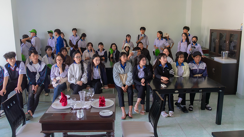 During the program, the students were divided into several small groups and guided through practical training areas belonging to different faculties of the University of Phan Thiet. Through these real-life experiences, the students had the opportunity to explore fields that interested them while learning more about the professional knowledge and skills provided through the University’s training programs.