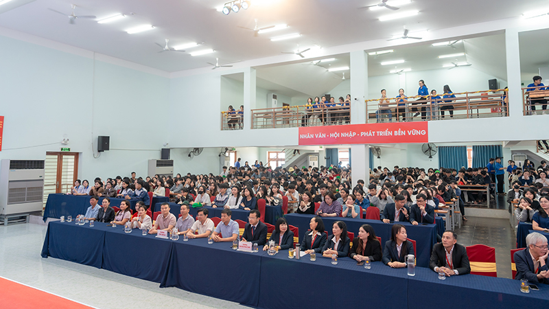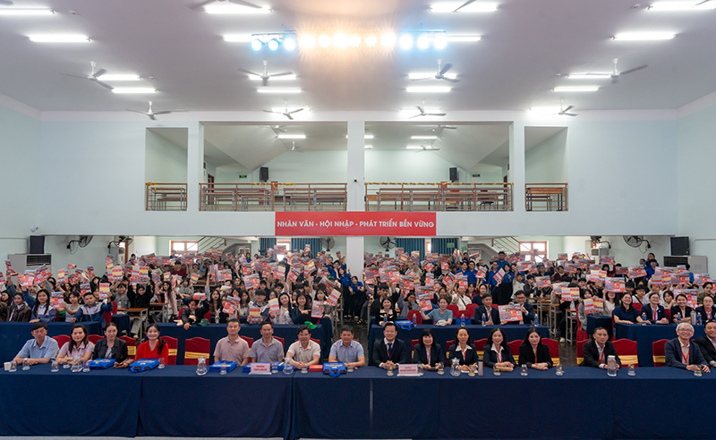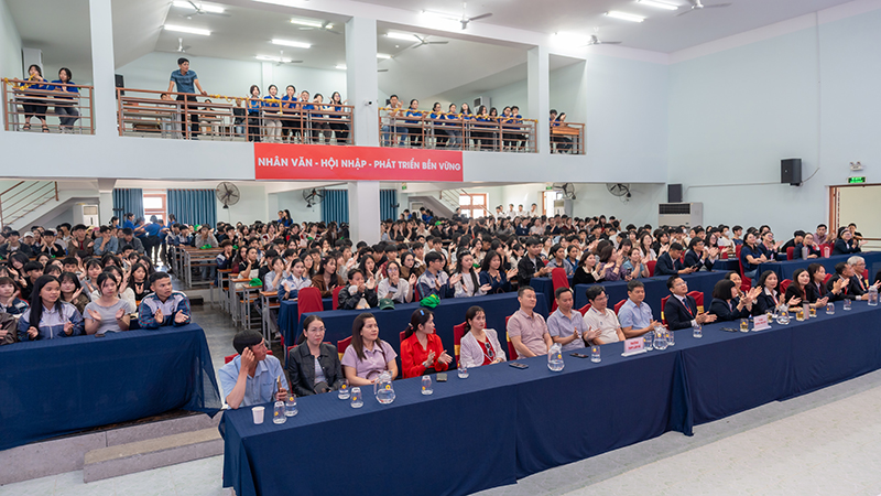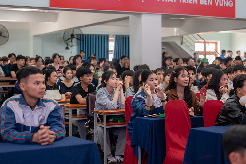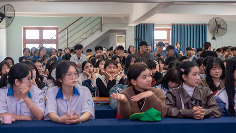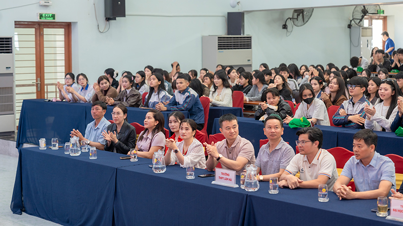 Attending the program on behalf of the University of Phan Thiet were Dr. Nguyen Tan Y – Vice President and Head of the Faculty of Engineering and Technology, along with administrators, lecturers, staff, and students from various faculties of the University. Representing Lam Ha High School were Mr. Nguyen Tho Hien – Vice Principal, along with teachers, professional staff, and especially nearly 400 Grade 12 students of the school.