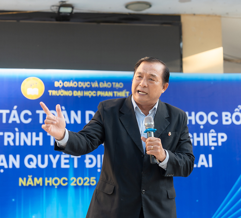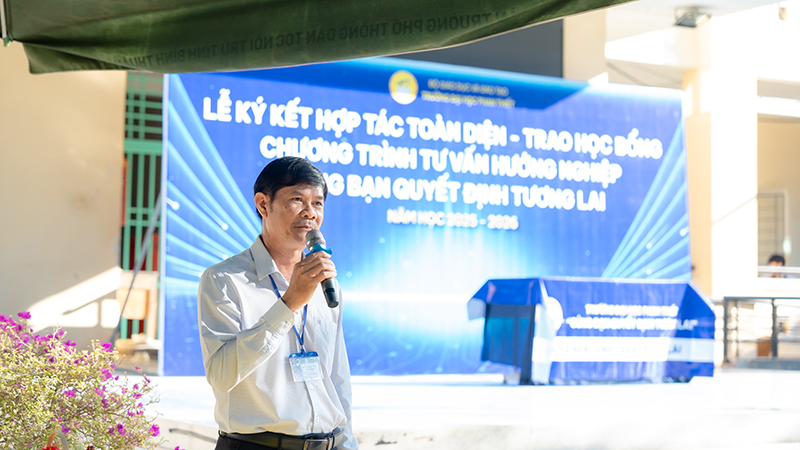 Phát biểu tại chương trình, Thầy Lương Đào Quốc Dũng – Hiệu trưởng Trường Phổ thông Dân tộc Nội trú đã gửi lời cảm ơn sâu sắc đến Trường Đại học Phan Thiết vì sự quan tâm, đồng hành và những hoạt động tư vấn hướng nghiệp thiết thực dành cho học sinh nhà trường. Trước sự trưởng thành và thành công của các thế hệ cựu học sinh, đặc biệt là những em đang theo học tại UPT, Thầy đánh giá cao chất lượng đào tạo, môi trường học tập năng động và định hướng thực tiễn mà Trường Đại học Phan Thiết mang lại. Thầy bày tỏ mong muốn thông qua chương trình, các em học sinh sẽ có thêm nhiều thông tin hữu ích, từ đó lựa chọn đúng ngành nghề, đúng môi trường học tập và vững vàng hơn trên hành trình học tập, lập nghiệp trong tương lai.