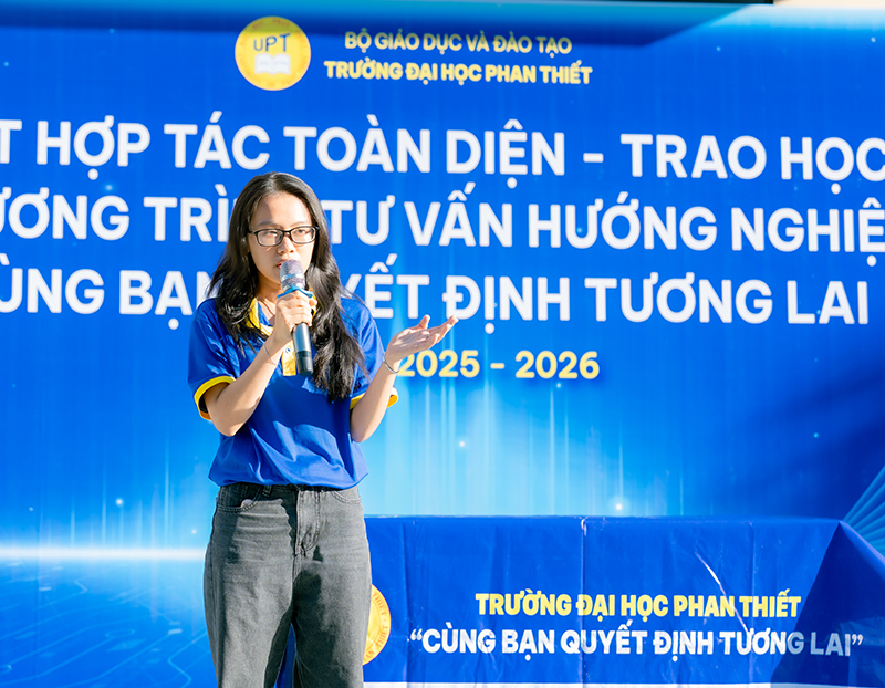 Sáng ngày 02/3/2026, Trường Đại học Phan Thiết (UPT) đã tổ chức chương trình tư vấn hướng nghiệp tại Trường Phổ thông Dân tộc Nội trú, thu hút sự tham gia của đông đảo học sinh. Chương trình diễn ra trong không khí cởi mở, sôi nổi, mang đến nhiều thông tin thiết thực, góp phần hỗ trợ học sinh trong quá trình lựa chọn ngành học và định hướng con đường nghề nghiệp tương lai.