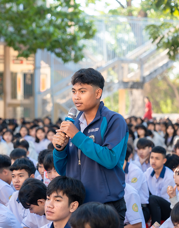 Chương trình càng trở nên hấp dẫn khi các em học sinh Trường Phổ thông Dân tộc Nội trú tham gia các hoạt động giao lưu, trả lời câu hỏi và nhận những phần quà ý nghĩa từ Ban tổ chức. Đặc biệt, cựu học sinh của Trường Phổ thông Dân tộc Nội trú, hiện đang là sinh viên Trường Đại học Phan Thiết đã có phần giao lưu để lại ấn tượng sâu sắc cho toàn thể học sinh Trường Phổ thông Dân tộc Nội trú. Những trải nghiệm quý báu, những câu chuyện thực tế từ quá trình học tập và rèn luyện tại UPT qua lời chia sẻ chân thành và gần gũi của cựu học sinh đã truyền cảm hứng mạnh mẽ đến toàn thể học sinh có mặt tại chương trình. Qua đây, giúp các em có thêm niềm tin, động lực để chuẩn bị hành trang vững chắc trước khi bước vào kỳ tuyển sinh Đại học năm 2026.