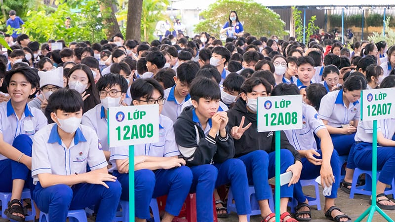 On the side of Ham Thuan Bac High School, there was the presence of MSc. Tran Trung Toan – Principal, Mr. Nguyen Ngoc Tan – Deputy Secretary of the Party Committee – Vice Principal, teachers, staff, staff and all students in grades 11 and 12 in the School.