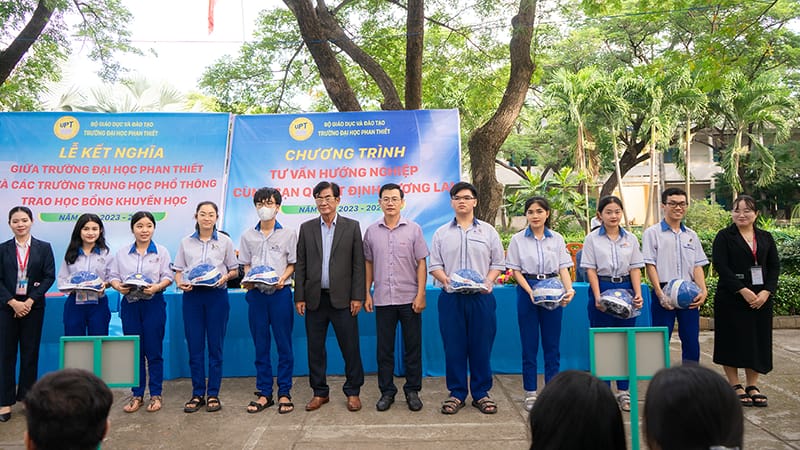 Sáng 22/11/2023, Đoàn tuyển sinh trường Đại học Phan Thiết (UPT) đã tổ chức chương trình Tư vấn hướng nghiệp năm 2024 và Lễ kết nghĩa tại trường Trung học Phổ thông (THPT) Hàm Thuận Bắc.