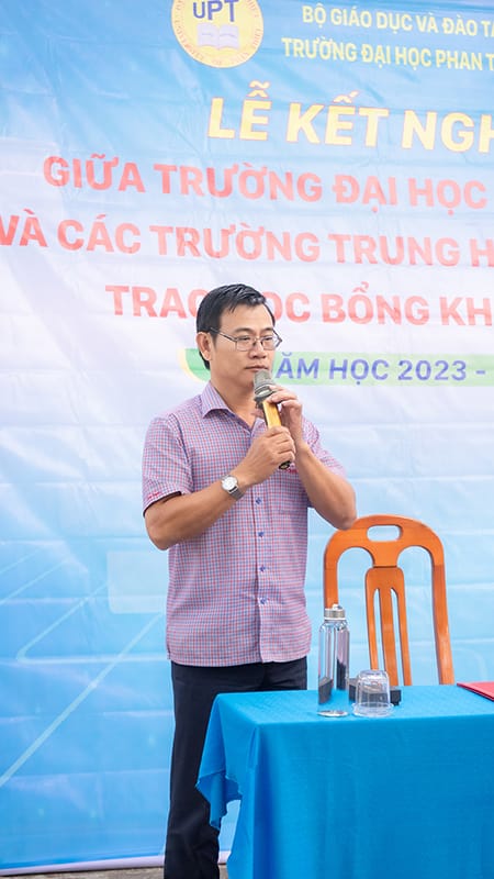 Associate Professor, Dr. Dinh Phi Ho – Party Cell Secretary – Vice Principal of Phan Thiet University spoke at the program