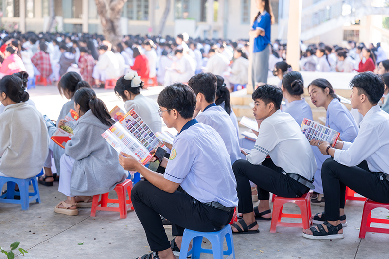 Phần giao lưu của TS. Trịnh Thanh Toản càng thêm thu hút với những nội dung chia sẻ, giải đáp tận tình mọi thắc mắc của các em học sinh lớp 12 tại trường Phổ thông Dân tộc Nội trú, góp phần giúp các em nhận thức được rõ hơn về tầm quan trọng của việc định hướng nghề nghiệp, từ đó có được sự đầu tư học tập nghiêm túc và chuẩn bị chu đáo trước khi bước vào ngưỡng cửa Đại học.