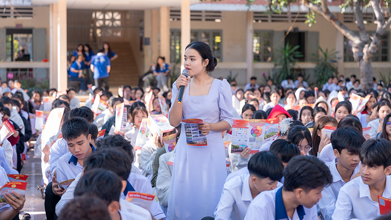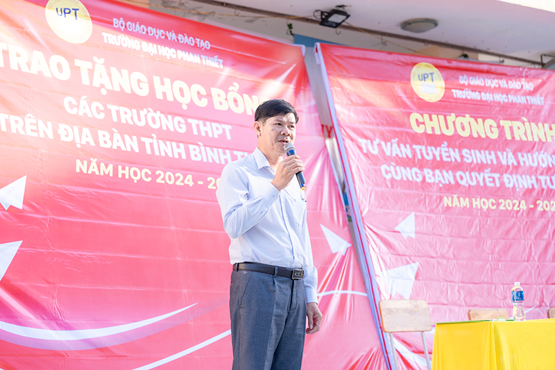 Đặc biệt, Trưởng Khoa Ngoại ngữ không quên giới thiệu đến các em học sinh những thông tin tiêu biểu về chính sách tuyển sinh và các chương trình học bổng thiết thực dành cho tân sinh viên mà trường Đại học Phan Thiết áp dụng trong năm 2025.